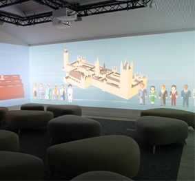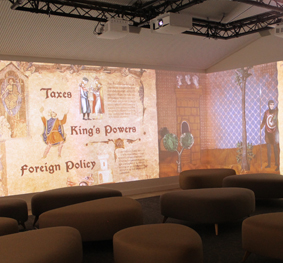 Students also see recreated events connected to each debating chamber such as when the suffragettes fiercely protested in the House of Commons in 1908, and when the Duchess of Queensbury attempted to gain access to the House of Lords in 1739. The projection is accompanied by six Tannoy Di 5a powered speakers to create an immersive sound.