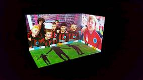 Using Optoma’s Projection Mapper, Alexander created a 3-dimensional display of a football ground, complete with active sponsor billboards around the pitch.